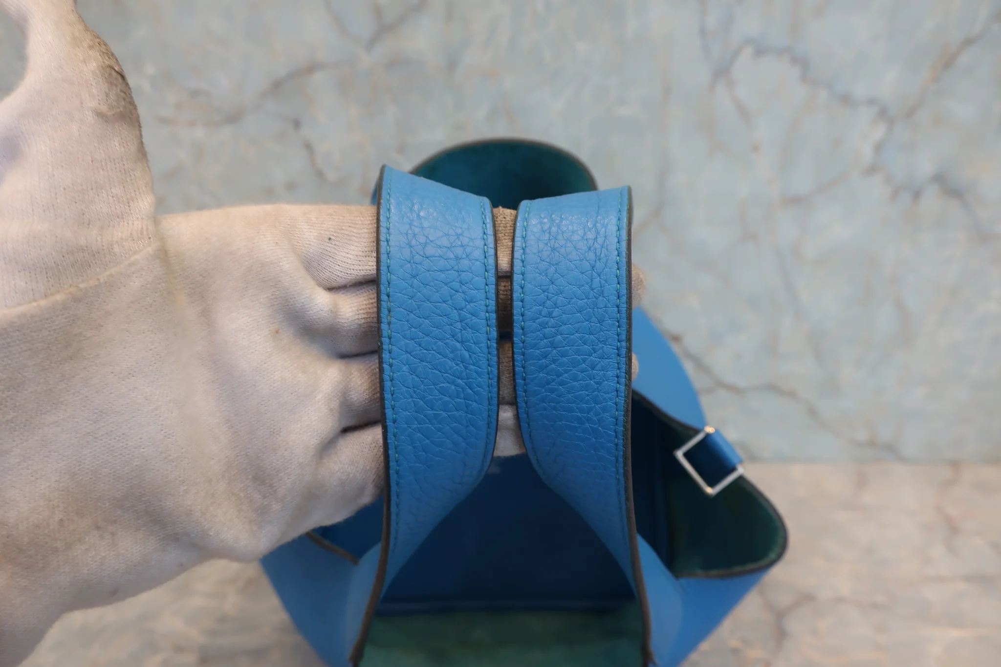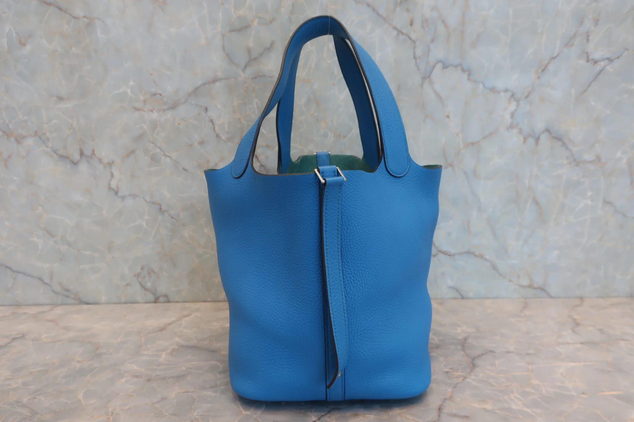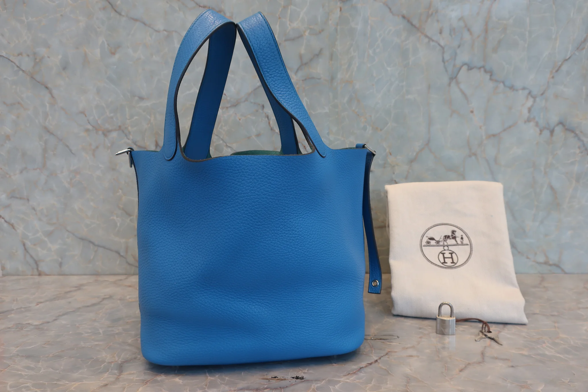 HERMES/エルメス ピコタンロックMM トリヨンクレマンス ブルーザンジバル X刻印 ハンドバッグ 800040081