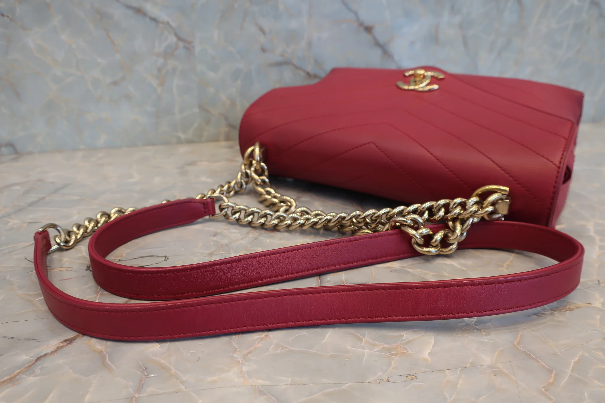 CHANEL/シャネル Vステッチシングルフラップチェーンショルダーバッグ