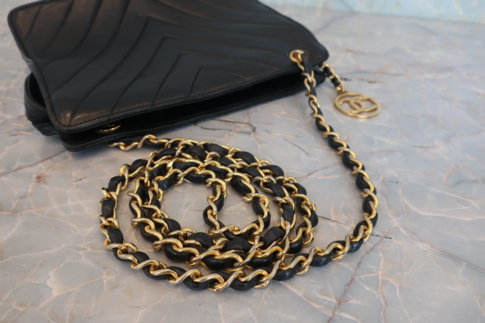CHANEL/シャネル Vステッチチェーンショルダーバッグ
