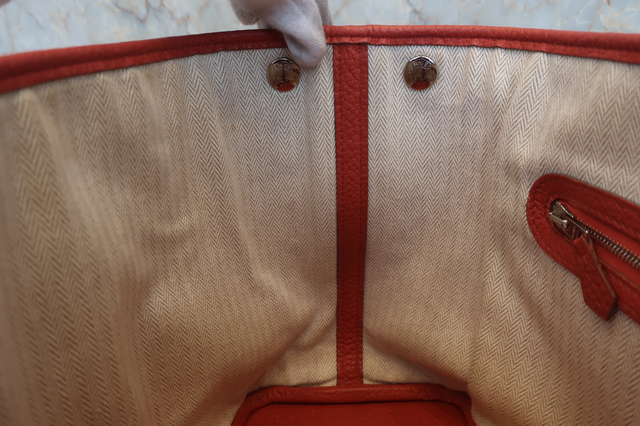 内側:僅かな変色