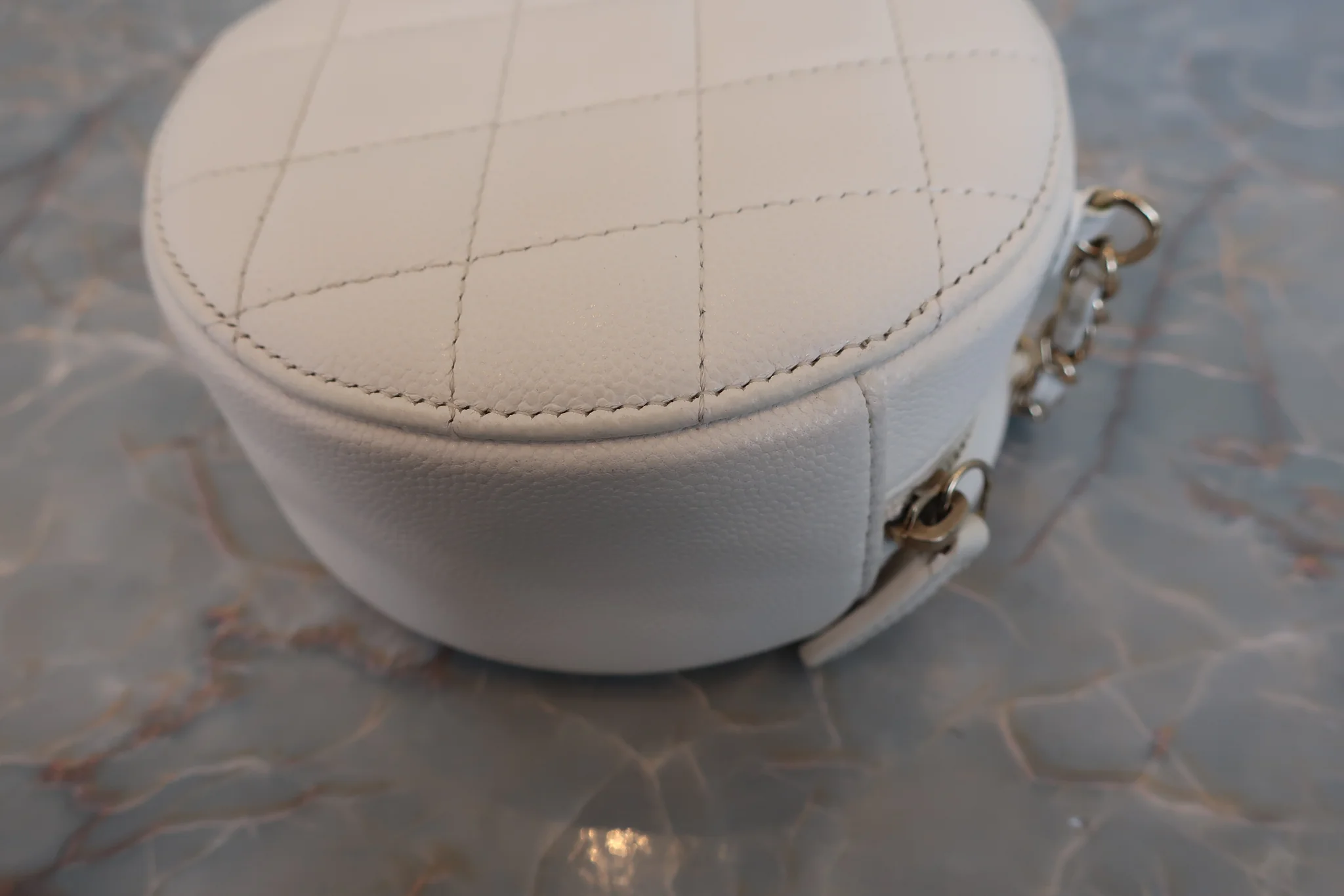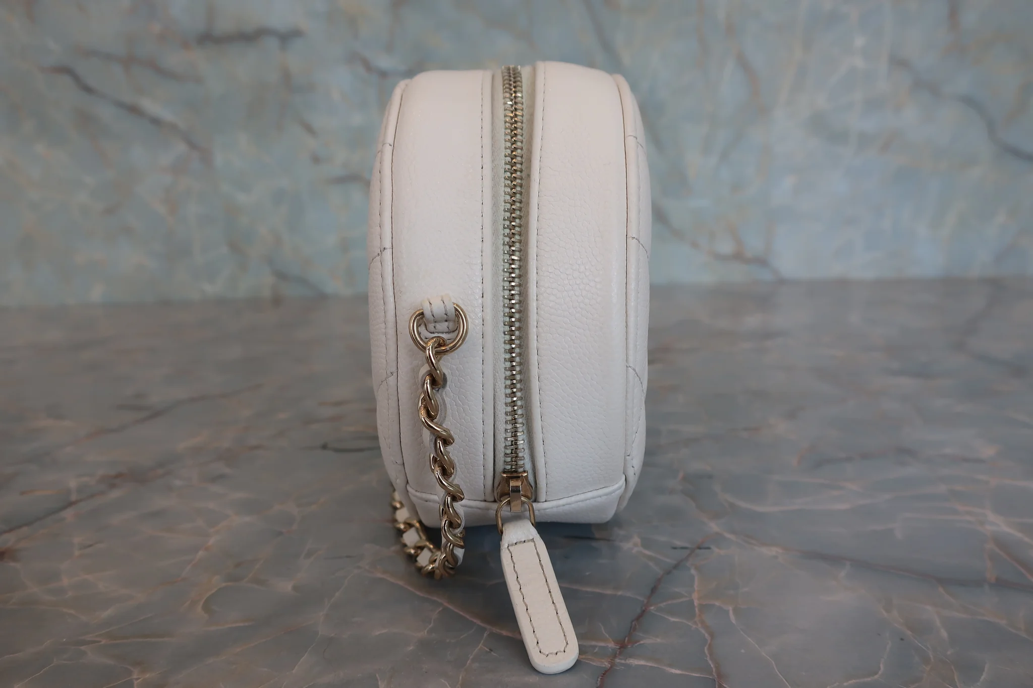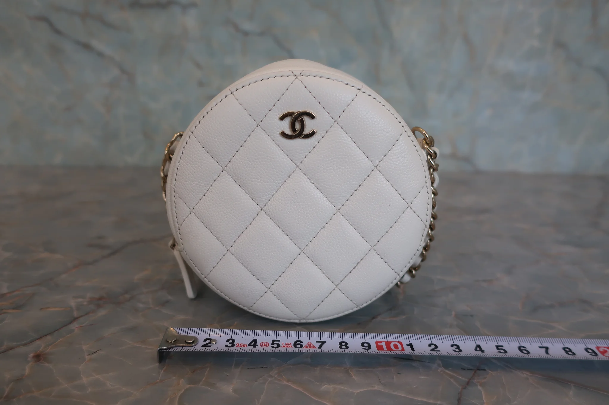 CHANEL/シャネル マトラッセラウンドチェーンショルダーバッグ キャビアスキン ホワイト/ゴールド金具 ショルダーバッグ 800040100
