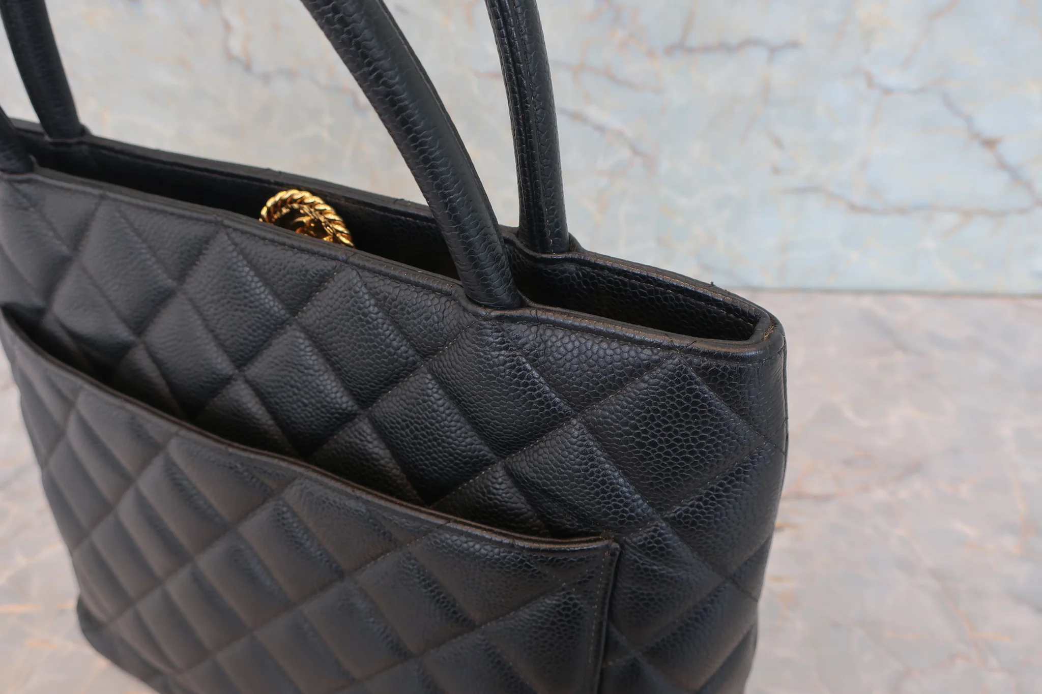 CHANEL/シャネル 復刻トート キャビアスキン ブラック/ゴールド金具 トートバッグ 800030148